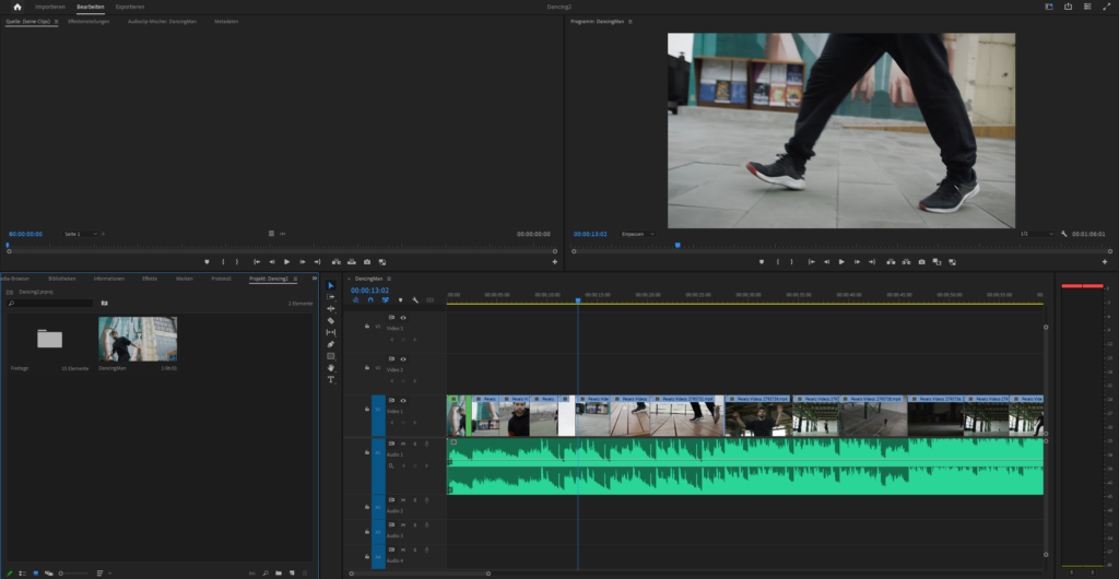 In diesem Video habe ich mit dem Adobe-Programm Premiere Pro Videos eines tanzenden Mannes zusammengeschnitten. Dabei habe ich verschiedene Effekte wie Slomo, Boomerang, Weichzeichner und Bild-in-Bild-Effekte verwendet.