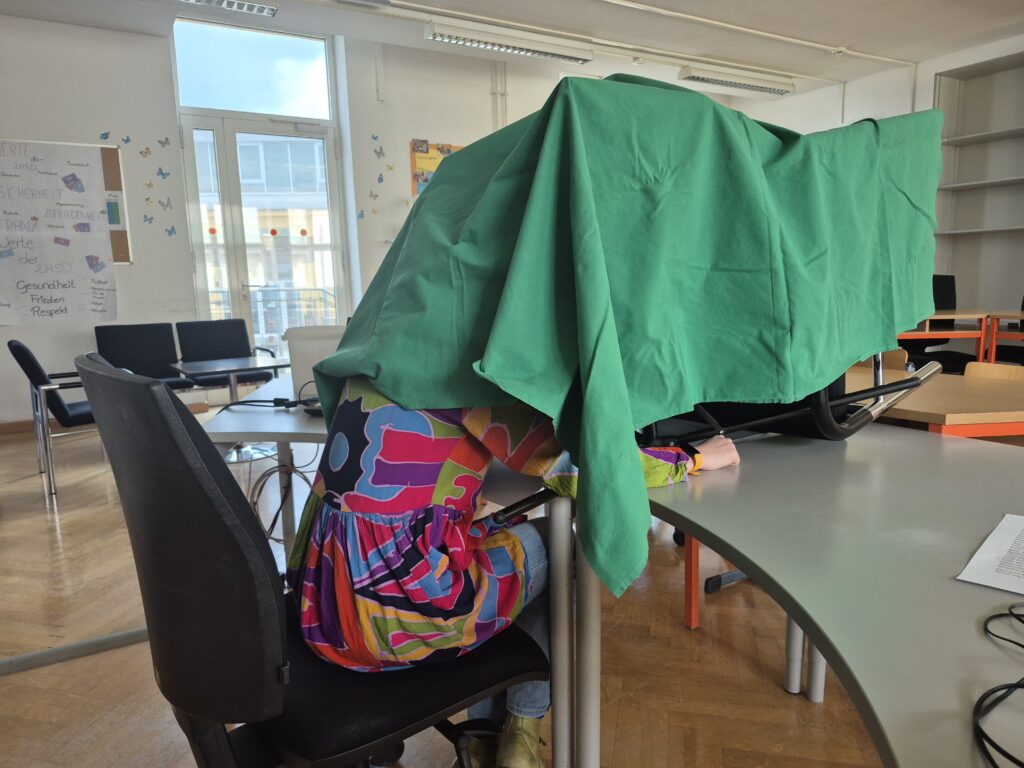 Beim nächsten Anschauen war das Bild super – aber dann fiel uns ein Rauschen im Ton auf. Na toll! Also nochmal: Ton neu aufnehmen, diesmal in einem ruhigeren Raum und mit improvisiertem Geräuschschutz:
